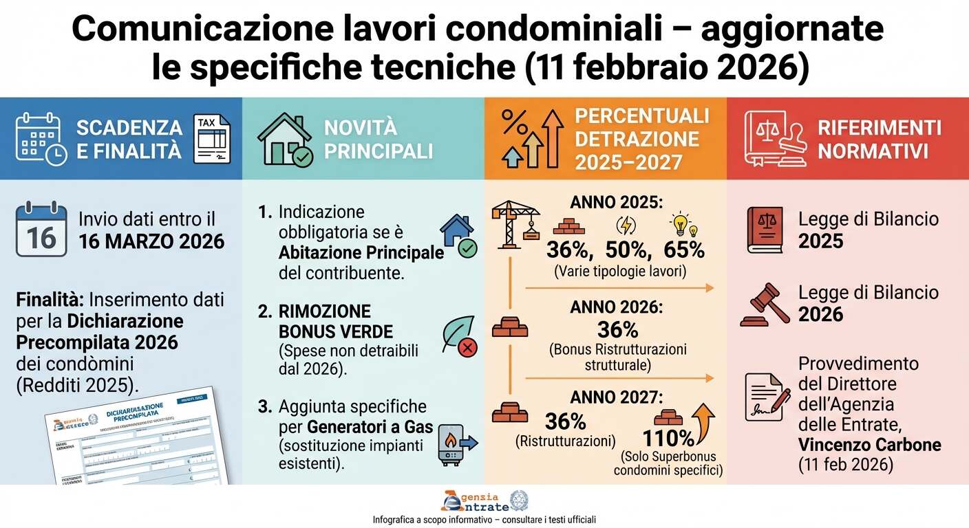 L’aggiornamento è stato formalizzato pertanto, con il provvedimento del 10 febbraio 2026, firmato dal direttore dell’Agenzia, Vincenzo Carbone, che sostituisce integralmente la precedente versione delle specifiche. L’adeguamento recepisce le novità introdotte dalla legge di bilancio 2025, con effetti sul periodo d’imposta rilevante per la prossima dichiarazione.