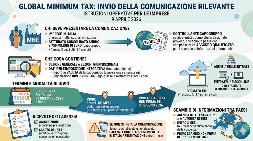 Il provvedimento del 9 aprile 2026 emanato dall’Agenzia delle Entrate interviene in modo strutturato su uno degli adempimenti più rilevanti della fiscalità internazionale: la comunicazione rilevante nell’ambito della Global Minimum Tax.