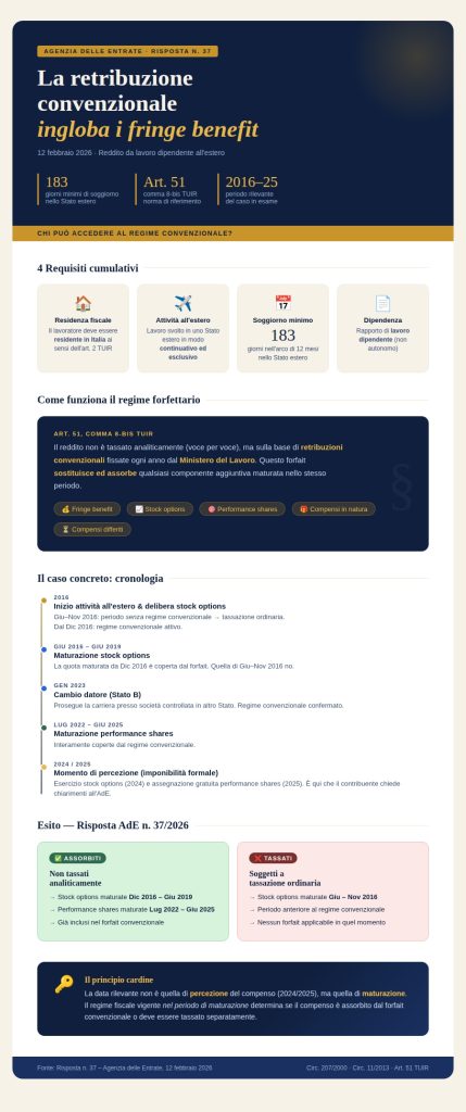 Tale chiarimento è stato fornito dall’Agenzia delle entrate con la risposta n. 37 del 12 febbraio 2026.