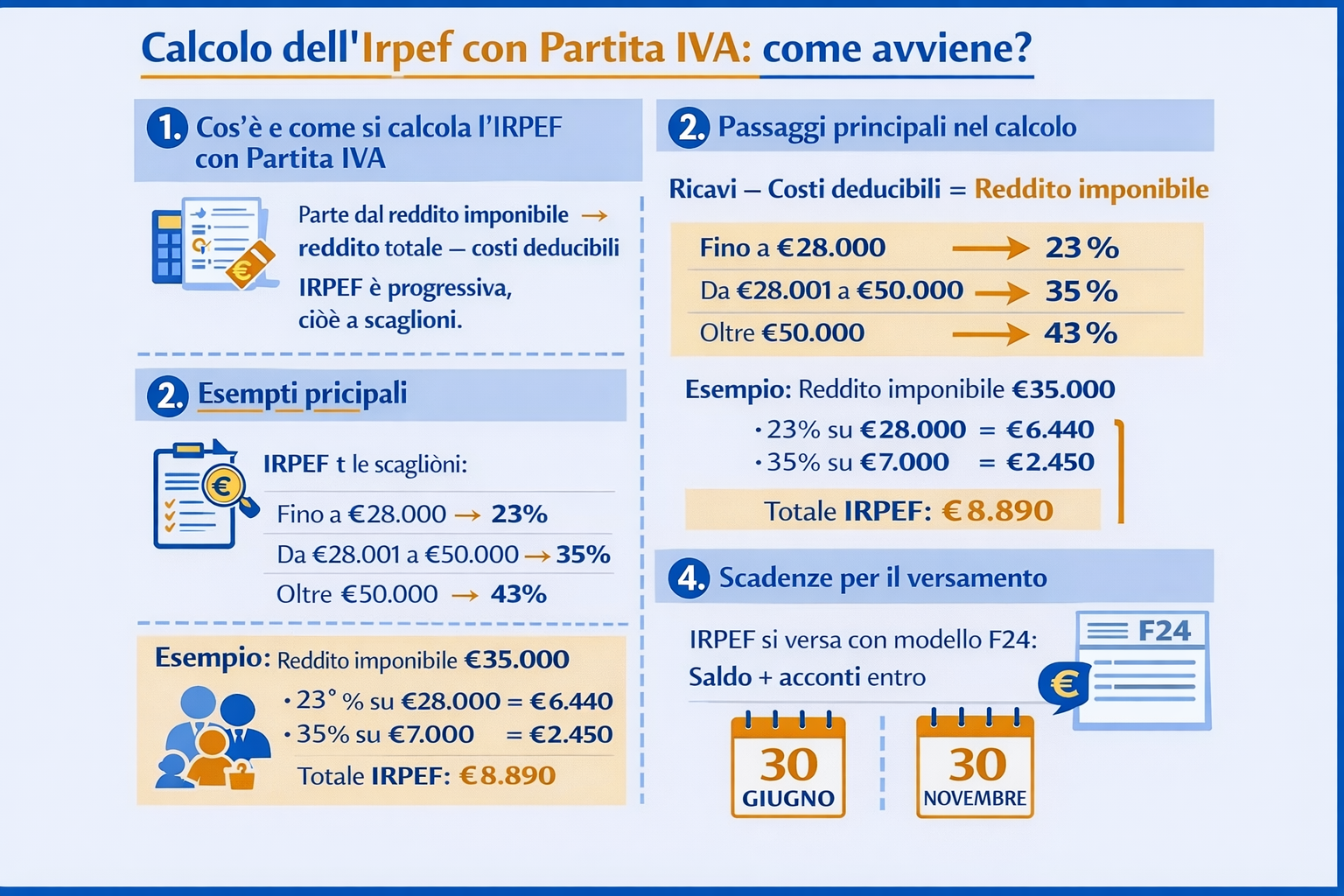 Come avviene il calcolo dell’Irpef con Partita IVA? Se hai la Partita IVA in regime ordinario, calcolare correttamente l’IRPEF è fondamentale per evitare brutte sorprese e sapere quanto accantonare durante l’anno.